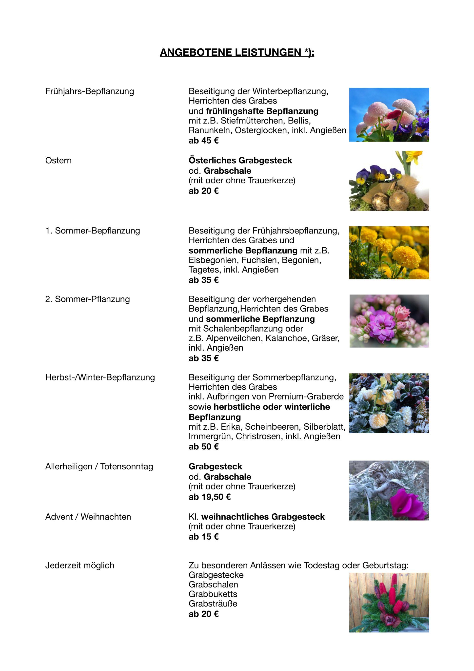 Ob Sie eine einmalige Bepflanzung wünschen oder ich mich z. B. das ganze Jahr um das Grab kümmern soll