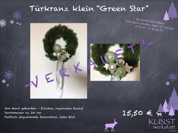 ein wenig weihnachtliche Stimmung genießen und handgefertigte Türkränze, Gestecke,